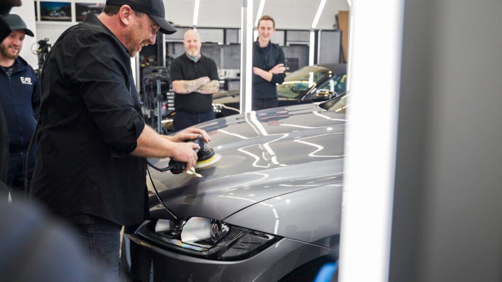 The day featured an agenda packed with demonstrations and practical sessions. Technicians shared insights on advanced detailing techniques including ceramic coatings, flat polishing, interior restoration, and methods for transforming tired bodywork. A live smart repair demonstration ran throughout the afternoon, offering a rare look at the precision and craftsmanship required to deliver a perfect finish.
